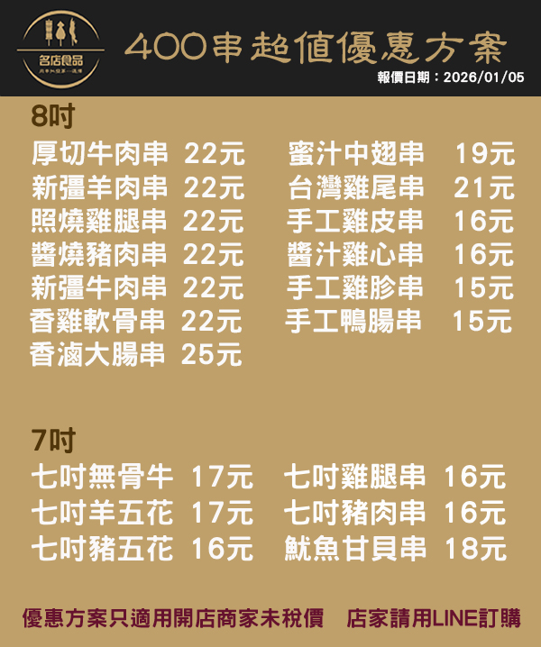 最新优惠方案:【店家专属未税价请用LINE订购】混合批发200串可享优惠价 混合批发400串可享最低优惠价 优惠方案只适用开店商家未税价,店家请用LINE订购电话:0920103630LINE:@kkd8556t ⬅直接点击加入好友 ⬅直接点击加入好友 回列表